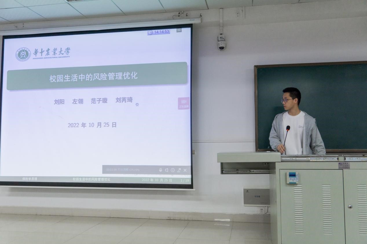 10月26日下午,由beat365中文唯一官网柳鹏程老师发起的的“平安校园,防患未然”主题汇报会在三教B205顺利举行。26支参与队伍以校园内的风险为主题,结合《保险学原理》课程中风险与风险管理的知识,将理论知识和校园生活相结合,进行3分钟左右的汇报,打造一堂富含思政元素的探究式、实践型的高质量课堂。