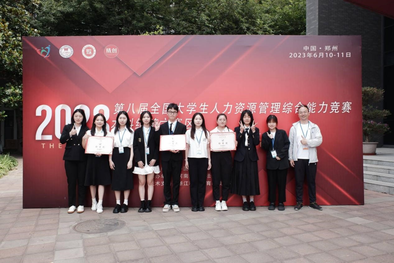 2023年4月23日,beat365中文唯一官网张爱武、王勇老师指导的三支队伍在参与第六赛区(湖北、河南、江西)区域赛“HR大数据分析”线上环节后,成功入围第六赛区线下“HR实务设计”环节。2023年6月9日,王勇老师带领三支队伍赴河南财经政法大学参与比赛。