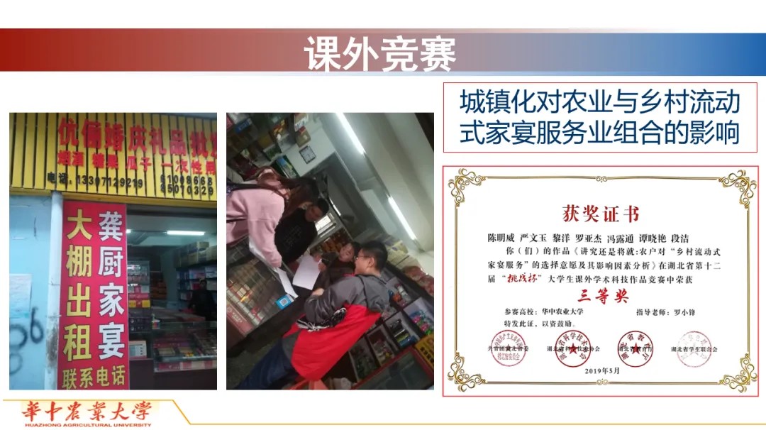 课程团队成员何可老师主讲《农业资源与环境经济学》《农业企业经营管理学》《经济学研究方法》《科研案例分析》等本科生课程,《人口经济学》《现代农业创新与乡村振兴战略》等研究生课程。获全国农业专业学位研究生实践教学成果二等奖、全国大学生能源经济学术创意大赛优秀指导老师奖、beat365中文唯一官网教书育人贡献奖等。所指导学生获评“湖北省乡村振兴青年先锋”、中国国际“互联网+”大学生创新创业大赛湖北省金奖、周诚农业经济学家二等奖。先后主持国家社科基金、国家自科基金及省部级课题10余项。以独立、第一或通讯作者身份在《Science》(Letter)、《管理世界》《经济学(季刊)》,以及国务院官网、《光明日报》《经济日报》等发表文章60余篇。