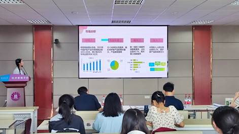 比赛过程中,参赛同学们充分展现了扎实的专业知识和出色的团队协作能力。他们通过条理清晰的陈述和深入细致的市场分析,向评委和观众展示了各自团队对市场趋势的敏锐洞察力和独特的商业策划思路。