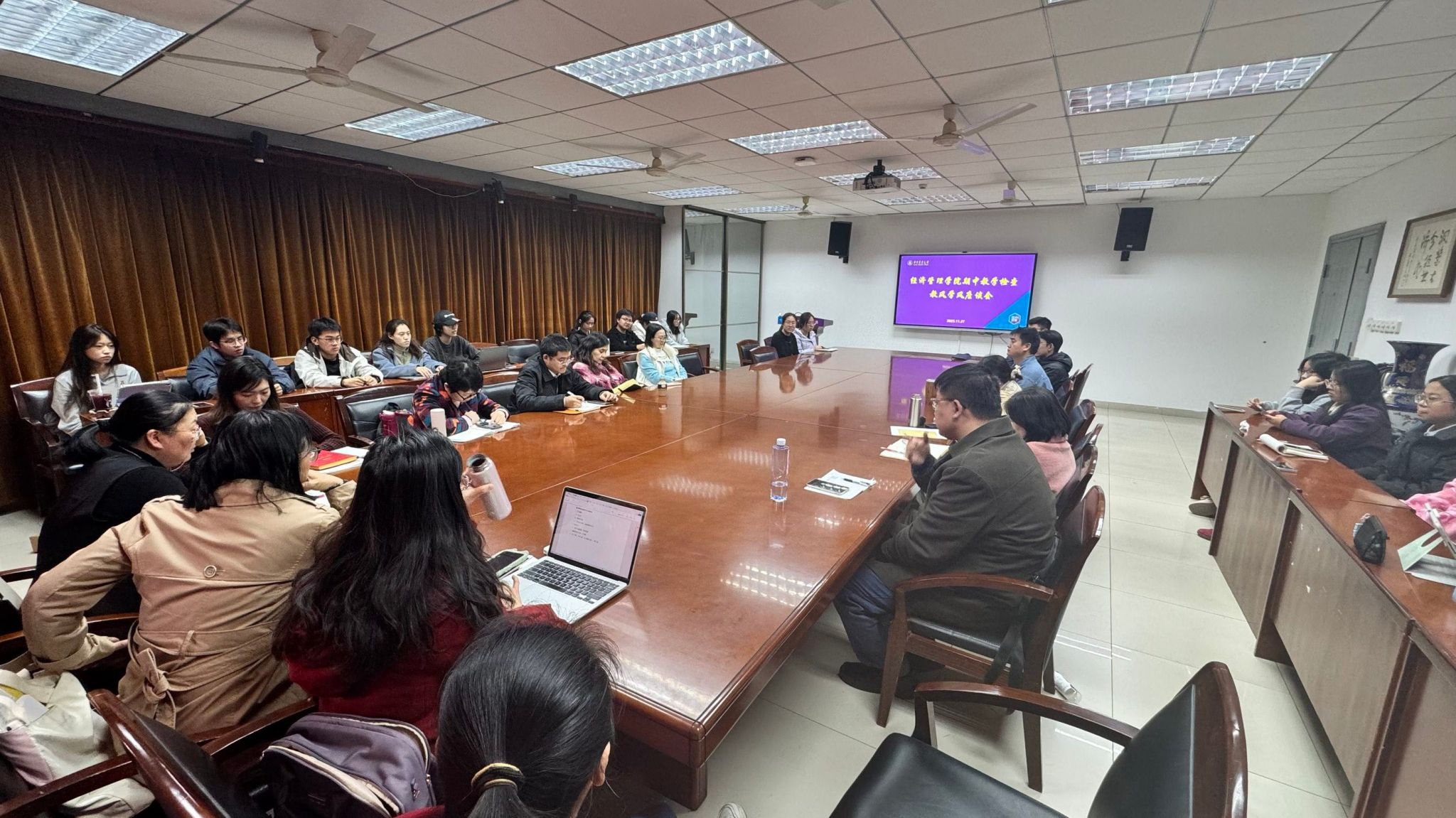 11月27日下午,beat365中文唯一官网在人文楼组织召开2025年秋季学期期中教风学风建设师生座谈会。本科生院实践管理处处长成协设、学校本科教学督导组组长任宇华应邀出席。