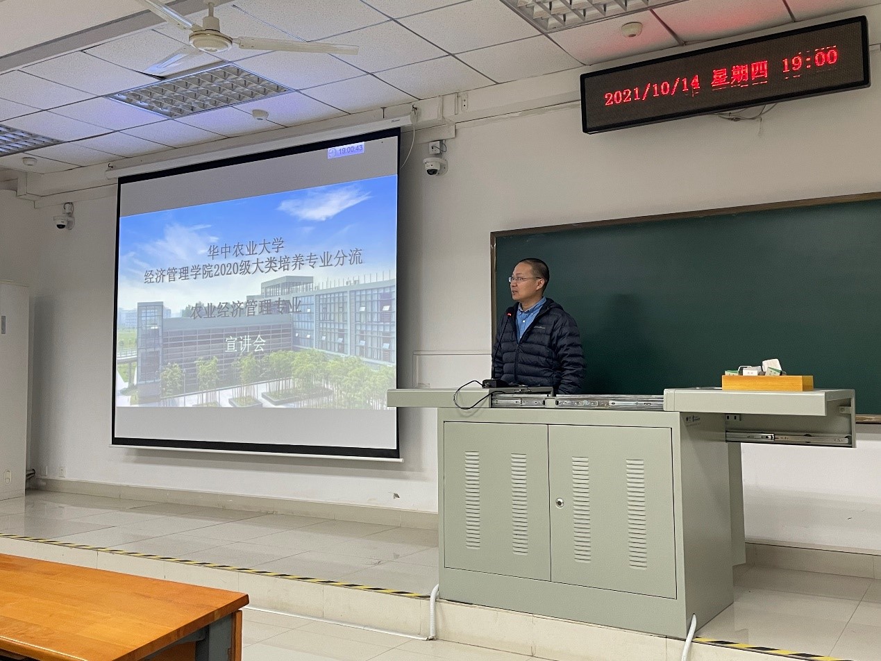 10月14日晚上7点,经管院农业经济管理系在三教C205教室举办了2020级专业分流宣讲会。经管院副院长罗小锋,农经系主任熊涛,以及闵师、杨志海、何可、郝晶辉、唐川等青年教师出席了本次会议。