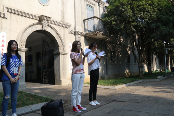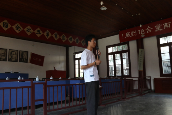 在中共五大会址内堂,离休老党员与新发展党员围坐一起交流体会。离休党员代表刘良玉老师说道:“作为一个中国共产党人,同学们必须不忘初心,牢记使命。爱我们的党,拥护我们的中央,爱我们的祖国,紧跟习总书记的步伐,朝着伟大复兴的目标不断拼搏。革命来之不易,我们党多少流血牺牲才换来了如今的锦绣河山。新一代的青年,要珍惜这一成果,更要知道自己肩上的责任,成为德智体美劳全面发展、对国家对人民有用的人才。”新发展党员代表曹珮、王天鹏表示“我们每个人都要热爱自己的祖国,虽然每个人的力量都是微小的,但14亿中国人都把自己的热情贡献出来,所结合的力量将是无坚不摧,无所不能”。