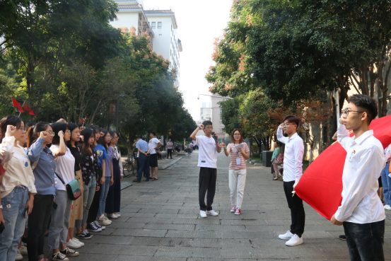 “我志愿加入中国共产党,拥护党的纲领,遵守党的章程,履行党的义务,执行党的决定……”到达五大会址后,同学们在领誓人王天鹏的带领下,重温入党誓词,庄严宣誓。