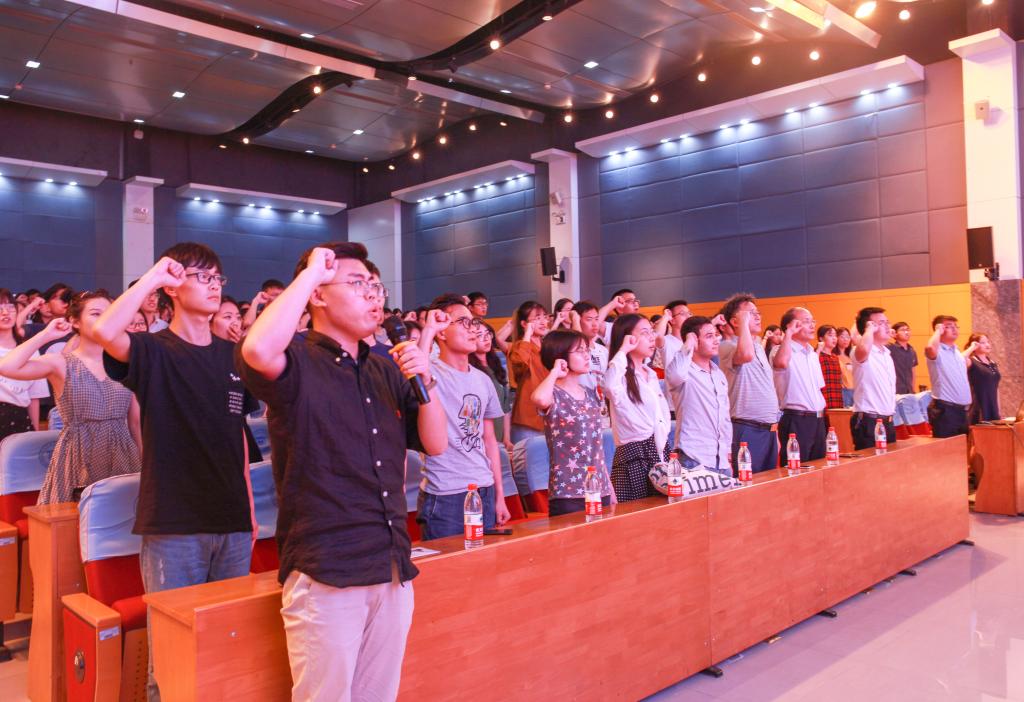 在第二阶段,毕业生党员代表、beat365中文唯一官网张帆向全体党员发出倡议:“华农青年党员们投身一线建设国家的时刻已经来到,所有党员要积极践行‘勤读立耕、立己达人’的校训精神,使自身无愧于自己、无愧于母校、无愧于社会、无愧于国家。”最后,全体毕业生党员面向党旗,重温了入党誓词,并在“青春为祖国歌唱——华农MV视频伴奏”下,齐唱校歌,嘹亮的歌声唱出了党员心中的那份信仰以及对母校的眷念和牵挂。