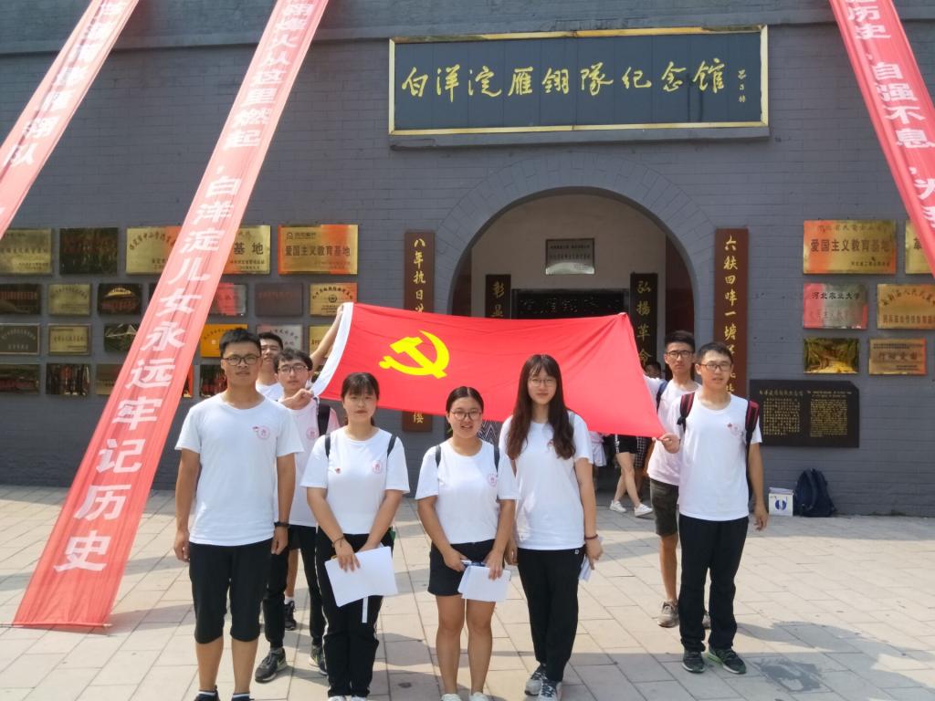 七月二十二日上午,临时党支部一行八人来到了位于白洋淀文化苑景区内的雁翎队纪念馆参观。在导游的热情讲解下,现场的一件件珍贵文物、一幅幅革命照片,使支部党员了解到了更多雁翎队革命战士合理利用地形、水性高超、本领高强、敢于抗敌的英勇事迹。正是因为有像雁翎队革命战士一样的革命青年,心怀革命成功的理想,有本领,敢担当,才击退了侵占我们家园的敌人,最终使革命走向成功。这不禁让支部党员们想起了习近平总书记在十九大报告中对青年一代的期望:青年一代有理想、有本领、有担当,国家就有前途,民族就有希望,实现中华民族的伟大复兴就有源源不断的强大力量。李俊基同志参观完后有感而发:“中国革命的成功不是一蹴而就,新时代要实现我们的宏伟目标,同样需要我们青年一代心怀理想、艰苦努力。作为一名大学生党员,我们一定要学习好雁翎队的红色革命精神,并把它运用到新时代的伟大实践之中,努力为新时代中国的建设和发展贡献青年一代的青年力量。”参观结束后,临时党支部在雁翎队塑像前庄严宣誓,重温入党誓词。回首先辈的奋斗历程,方知今日幸福来之不易。“前事不忘,后事之师”,唯有牢记历史,不断继承与发扬红色革命精神,才能使这些精神放射出新的时代光芒。