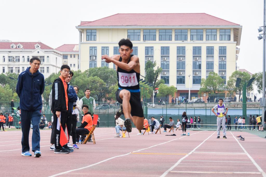 10月19日上午,第五十七届校运动会三级跳比赛正式开始。随着裁判一声令下,来自市场营销1601班的岳宁以13.61米再次为经管学院夺下首金。
