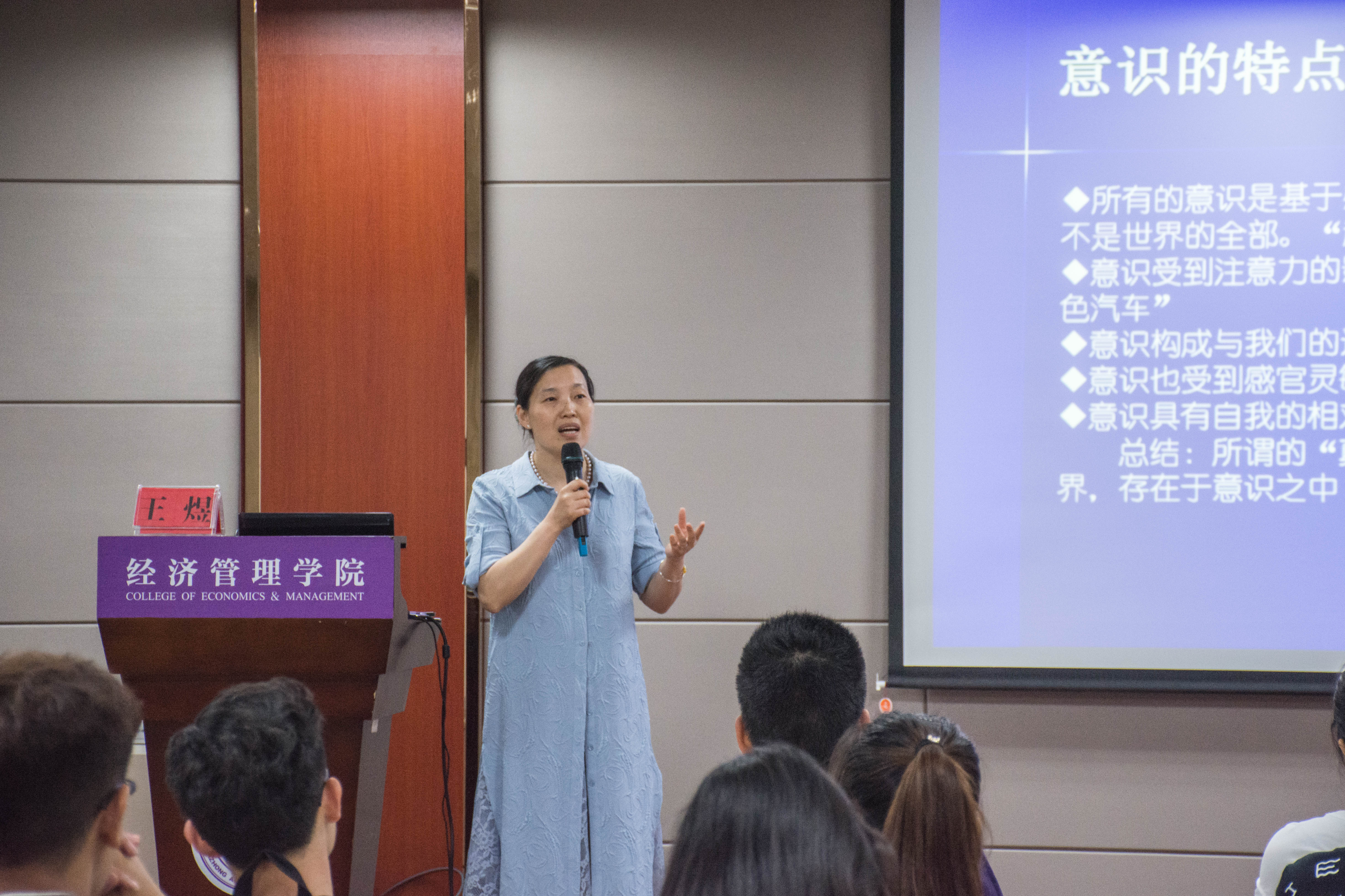 讲座接近尾声,王煜副教授指出,解梦是一种挑战,因为梦是一种为了保护自己免于因自觉而产生的痛苦及提醒自己潜意识下需求之间妥协的产物。在最后自由问答环节中,对于来自国贸专业的陈亮同学“如何做好梦”的提问时,王煜副教授建议大家保持良好的心态, 不要过于焦虑。而被问及“为什么会有噩梦”时,她提出了自己的见解,她认为,噩梦是自我惩罚,当自己做了自己认为不好的事情时,潜意识下就会产生对自己的不满,从而在梦中表现出来。