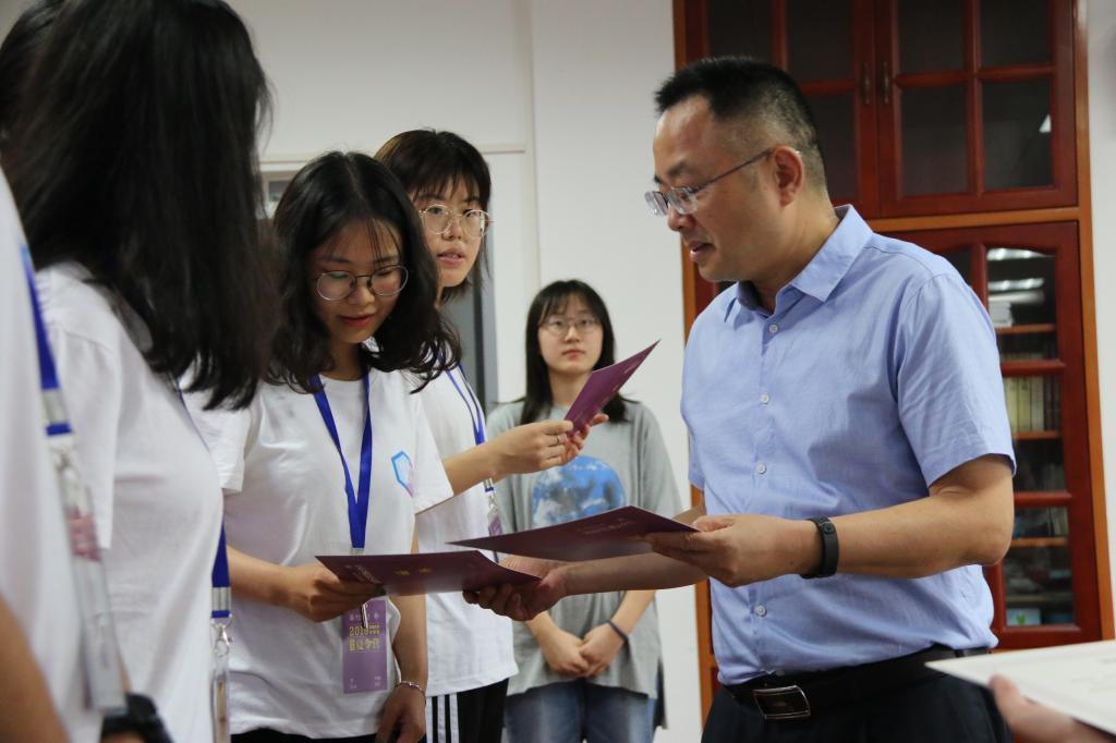 美好的时光总是短暂的,在经历了两天紧凑充实的学习生活后,7月12日,夏令营闭营仪式如期举行。同学们首先观看了一段记录两天夏令营精彩生活的视频,来自武汉工程大学的李汉升同学作为营员代表进行了发言,他从念华农、再认识、盼重逢三个时间维度,讲述了自己在本次夏令营中的所思所想所获。随后,副校长、beat365中文唯一官网院长青平教授为考核合格的优秀营员逐一颁发结业证书并合影留念。最后,青平副校长做总结发言,他简要总结了夏令营的基本情况,并真诚地谈到:“华农将会始终以一颗爱教育的心、爱学生的心,聚天下英才,真诚欢迎同学们能够选择华农,选择经管,师生共同努力,为国家的发展、民族的进步作出自己的贡献。”