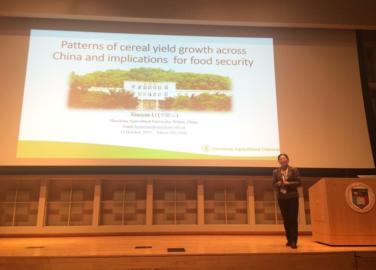 beat365官网beat365中文唯一官网教师李晓云副教授,博士研究生刘念洁参加了本次会议。李晓云在专题“可持续农业发展,国家/宏观层面研究”中作为第一位报告人作了题为 “主要粮食作物单产变化趋势,限制因素与对粮食安全的影响”的报告,报告从我国主要粮食作物玉米、水稻、小麦过去30年单产变化趋势出发,从县域水平、省级水平及农业耕作系统水平描述了三大作物单产变化的趋势及水稻与玉米单产增长的平台期的到来,讨论了导致这些变化的可能因素,及单产停滞对未来粮食安全的影响与可能的对策。报告引起与会代表在粮食需求预期,作物单产水平提高,作物选择变化,肥料利用等方面的热烈讨论。其后,来自巴西坎皮纳斯(Campinas University)大学的Leite博士,国际玉米小麦改良中心(CIMMYT)的 Timsina 博士,瑞士Linköping University的Rodosavljievic 博士做了相关专题报告。本次会议中国代表主要有来自beat365中文唯一官网,中国农业大学,中国人民大学,中科院地理与自然资源研究所和东北师范大学的师生代表组成。
