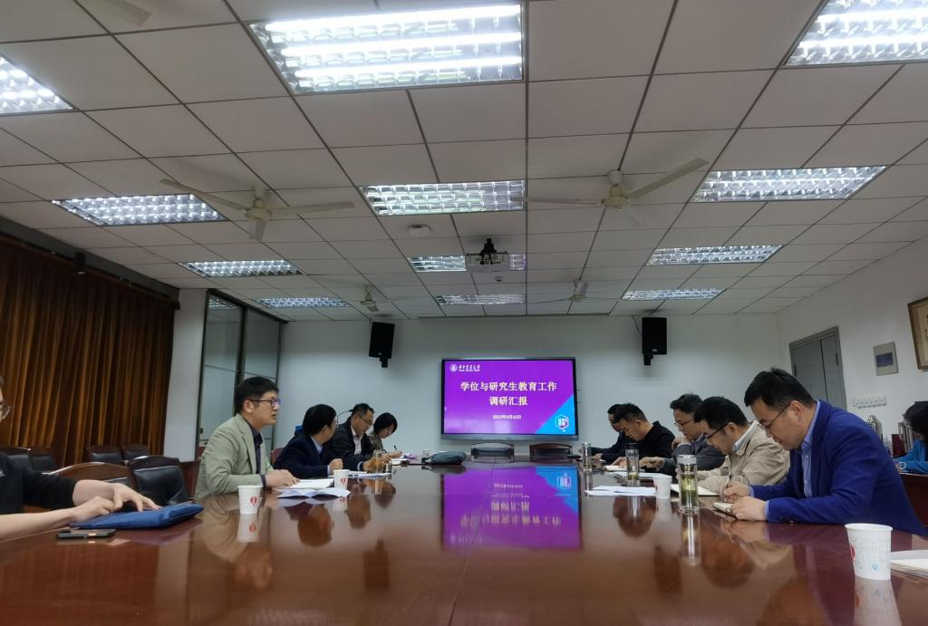 4月15日下午,副校长严建兵、研究生院常务副院长李斌一行到beat365中文唯一官网进行学位与研究生教育工作调研。beat365中文唯一官网党委书记陈国顺、院长李谷成及学院研究生教育工作负责同志参加调研座谈。