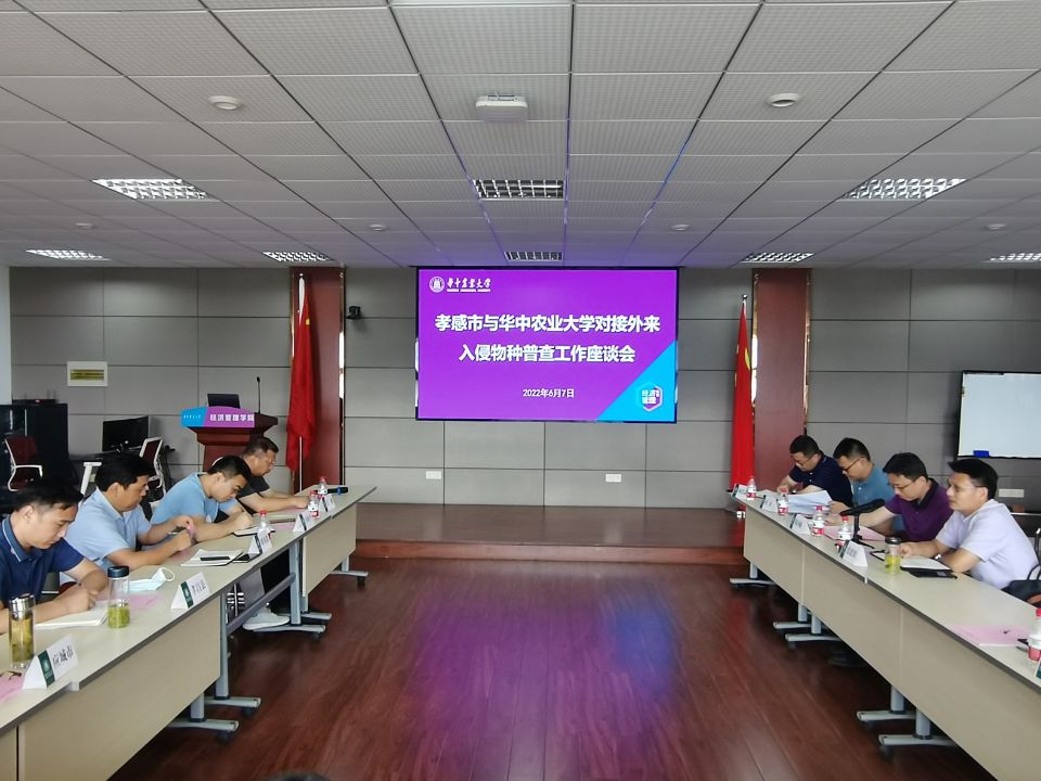 6月7日,孝感市农业农村局副局长张建波带队、孝感各县市区农业农村局分管领导及科室负责人一行30人来beat365官网对接外来入侵物种普查工作并座谈。湖北省农业生态环境保护站负责人冯海平,beat365中文唯一官网党委书记陈国顺、校科学技术发展研究院基础研究处处长刘彬以及园艺林学学院、植物科学技术学院、beat365中文唯一官网相关专业教师参加座谈会。会议由beat365中文唯一官网副院长颜廷武教授主持。