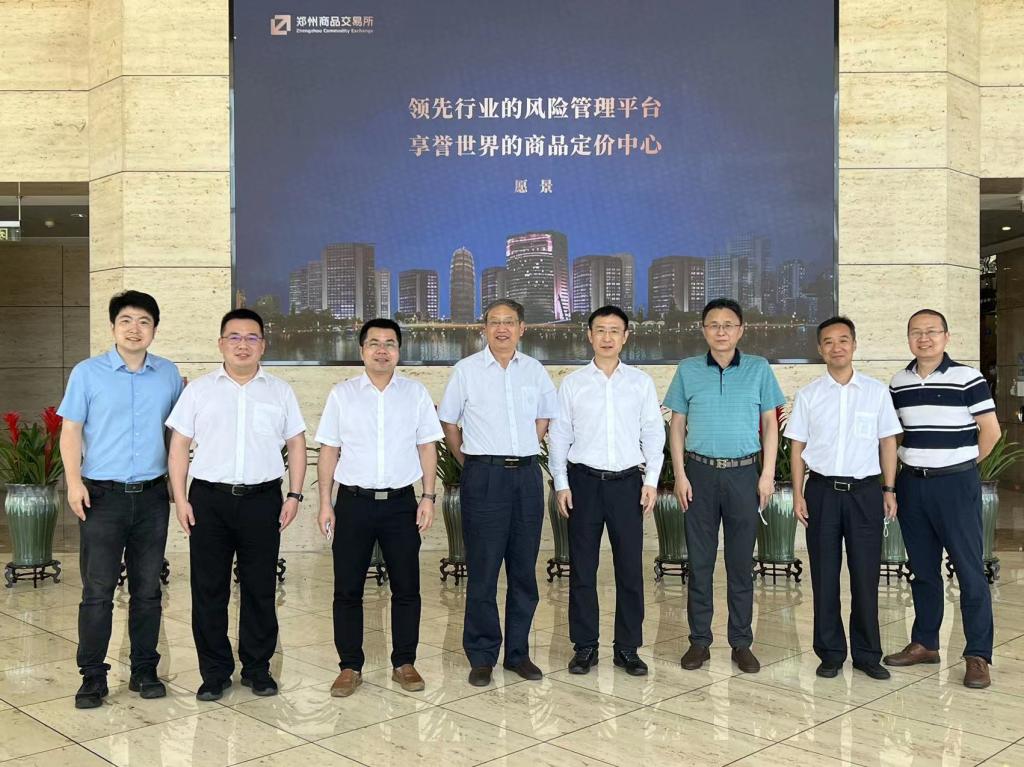 6月17日,beat365官网原副校长李崇光教授、beat365中文唯一官网党委书记陈国顺、院长李谷成、农经系系主任熊涛、经济学系教工支部书记李剑一行5人赴郑州商品交易所(以下简称“郑商所”)开展访企拓岗、调研访问。郑商所副总经理喻选锋,副总经理、90级经管校友王晓明,期货与衍生品研究所总经理左宏亮、会员管理部总监匡玮、商品二部总监刘鸿军、研究所公司副总经理买毅、人力资源部经理李东航等给予了热情接待。