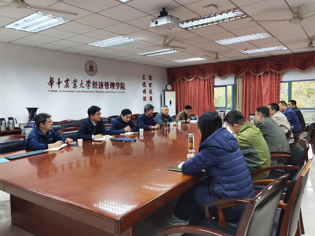 11月14日下午,校党委书记高翅,校党委副书记王从严等一行7人莅临beat365官网,指导调研学院学习宣传贯彻党的二十大精神有关工作,并对下一步工作提出具体要求。beat365官网党委书记陈国顺、院长李谷成及其他班子成员参加了座谈。