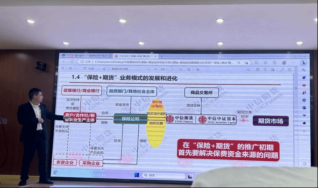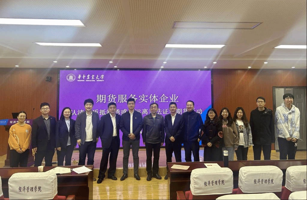 座谈会结束后,中信期货中南分公司产业客户部总监王刚、期权种子教练张英分别分享了“保险+期货”生猪项目案例和期权衍生业务服务湖北棉花企业案例,并与同学们展开了充分互动。王刚老师介绍了“保险+期货”模式的原理和项目的开展情况,展示了湖北省内“保险+期货”生猪项目业务流程和相关文本资料,并详细计算了农户、保险公司和期货交易所在项目过程中的出资和营收,让同学们充分了解“保险+期货”生猪项目全过程。张英详细介绍了期权衍生业务服务湖北棉花企业案例,包括如何利用期货和期权、场内和场外市场构建虚拟库存、锁定预售订单利润,并分析了该项目亏损的原因。