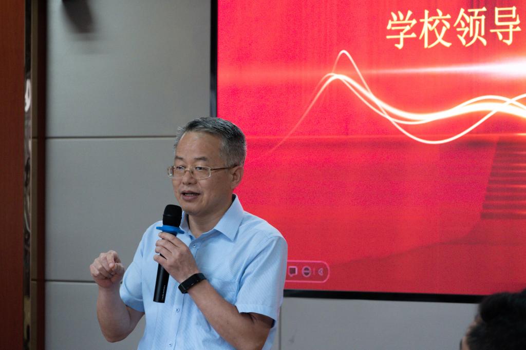 廖济忠发表总结讲话。他首先表达对李艳军老师光荣退休的美好祝福,对李艳军老师为学校和学院事业发展贡献智慧、青春和汗水致以崇高敬意。从纪检的角度,分享自己对幸福内涵的理解,认为平平安安、踏踏实实是幸福的本体和本质。祝贺李老师在37年的从教生涯中不仅收获了幸福,更收获了“得天下英才而教育之”的君子之乐,祝愿李老师拥有幸福美满的退休生活。