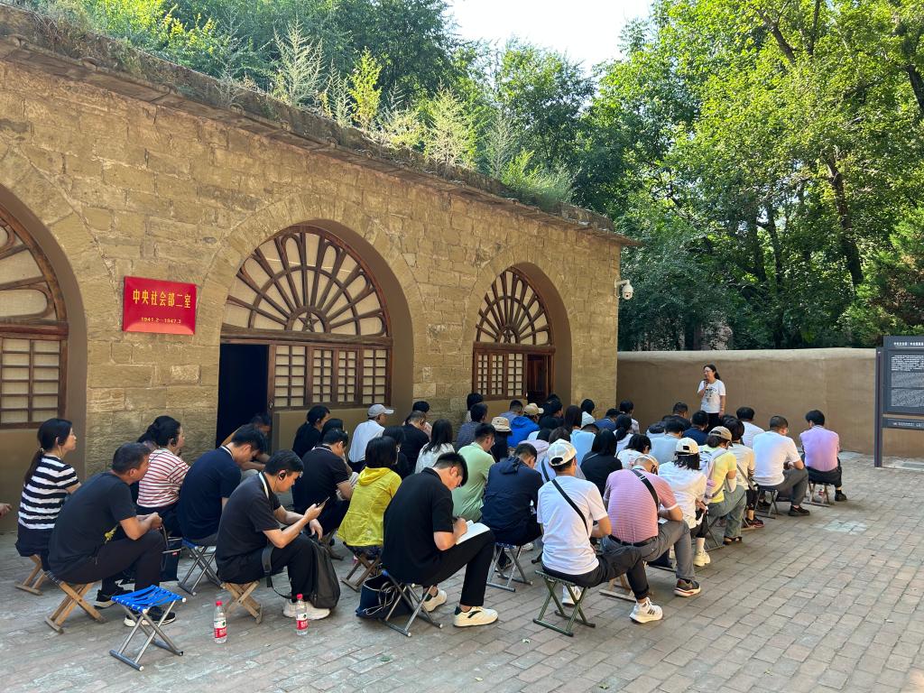 学员们在枣园革命旧址聆听学习由中国延安干部学院党史教研室讲师徐雯婷讲授的专题讲座《张思德精神与为人民服务》