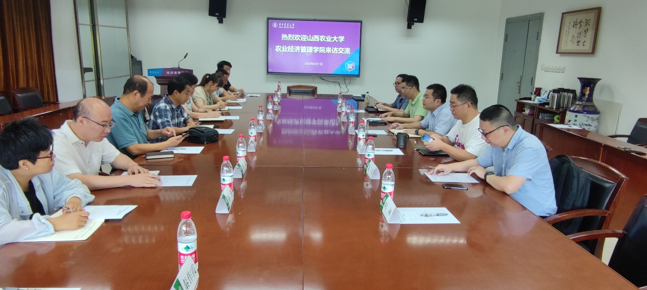 8月7日上午,山西农业大学农业beat365中文唯一官网院长邵林生、副院长李建军、李坤明、解晓悦,农经系主任刘艳萍、发展系主任刘豪、物流系主任王兴华一行来beat365官网交流调研。beat365官网院长李谷成,副院长项朝阳、罗小锋,农经系副主任何可、经济学系副主任聂飞等教师参加座谈。副院长罗小锋主持座谈会。