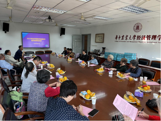 向晋文向各位退休教师表达了重阳节的祝贺,并向老寿星们宣读祝寿词,院长李谷成向老寿星们颁发了祝寿金。