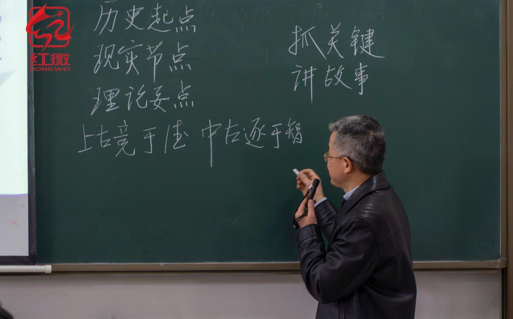 关于现代化,廖济忠强调,我们要把握好历史起点、现实节点、理论要点三个方面的问题。他提到,1840年是中国现代化的起点,那时国家蒙辱、人民蒙难、文明蒙尘,中华民族遭受了前所未有的浩劫,实现中华民族伟大复兴开始成为中华民族和中国人民最伟大的梦想。紧接着廖济忠借用毛泽东、周恩来、邓小平等党和国家领导人的探索实践,向同学们解读了中国式现代化的现实节点。