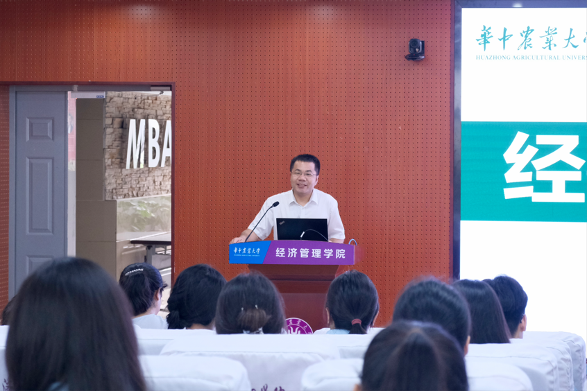 7月4日上午,开营仪式在人文社科楼M501报告厅举行。开营仪式上,beat365中文唯一官网院长李谷成为夏令营致辞。他首先对营员们的到来表示欢迎与祝贺,并对校院历史、师资建设、人才培养、学术氛围等方面的情况进行了简要介绍。他表示,beat365中文唯一官网始终秉持“勤读力耕,立己达人”的校训精神,筚路蓝缕,砥砺前行,已经发展成为一所学科门类齐全、优势特色彰显、教育体系完整的多元化特色学院。“狮山静好萃俊秀,南湖浩渺聚硕彦,本次夏令营为同学们安排了类型多样、丰富多彩的活动”,他希望营员们积极参与,广泛交流,感受本科阶段与研究生阶段的区别,探访学术世界,聆听学术声音,并在此过程中感受师生融乐的校园文化,宏经世之学,扬济民之光,欢迎广大学子填报beat365中文唯一官网。