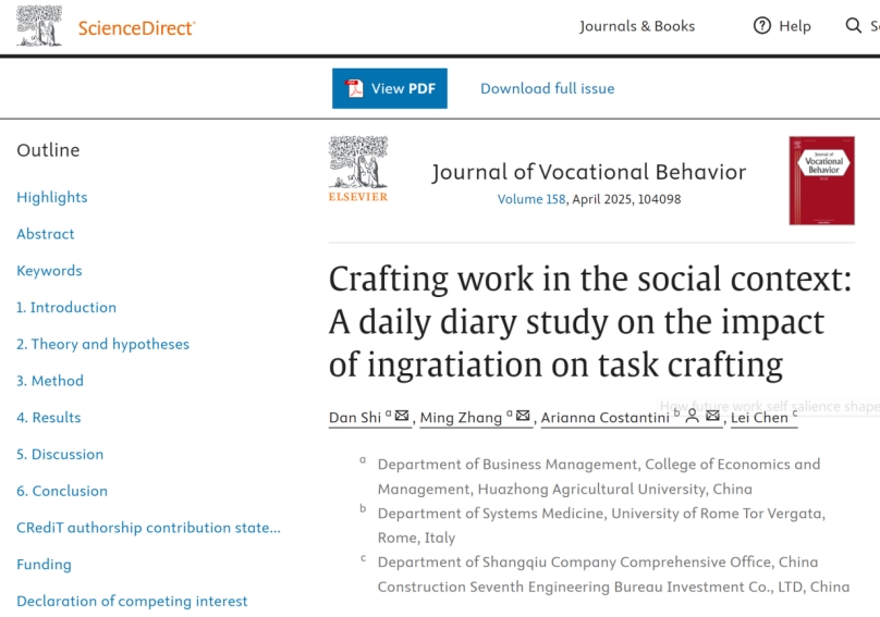 引用来源:Dan, S., Ming, Z., Arianna, C.,& Lei, C(2025),Crafting work in the social context: A daily diary study on the impact of ingratiation on task crafting, Journal of Vocational Behavior, On line.
