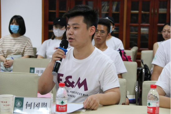 以报考岗位第一名的优异成绩考入南京市玄武区投资促进局的国营专业本科毕业生何冈胤在发言中表示,他从小便立志扎根基层,“宰相起于州部,猛将发于卒伍,未来要秉持在华农学经济学时‘经世济民’的初心,努力在基层这个‘大熔炉’里百炼成钢”。