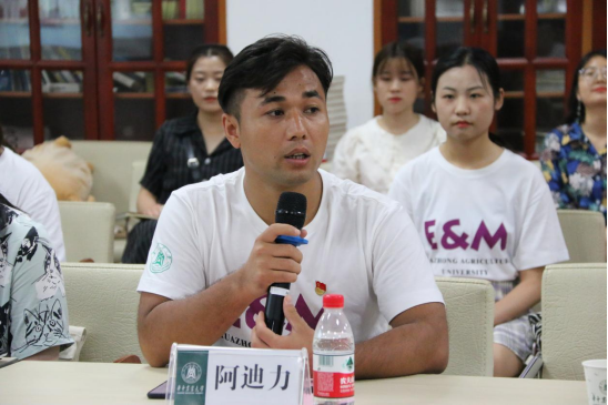 与会毕业生代表结合自身经历和感悟展开分享。“在部队我明白了生命的意义,在大学我懂得了如何为学为人”。曾参军入伍两年的农经专业本科毕业生阿迪力·阿里木今年成功考取中央选调生新疆专项计划,他讲述了自己入伍期间不顾安危坚守岗位、退伍后参加学生工作服务师生以及父母如何教育他报效祖国的故事,这些经历更坚定了他脚踏实地、奉献基层的决心。