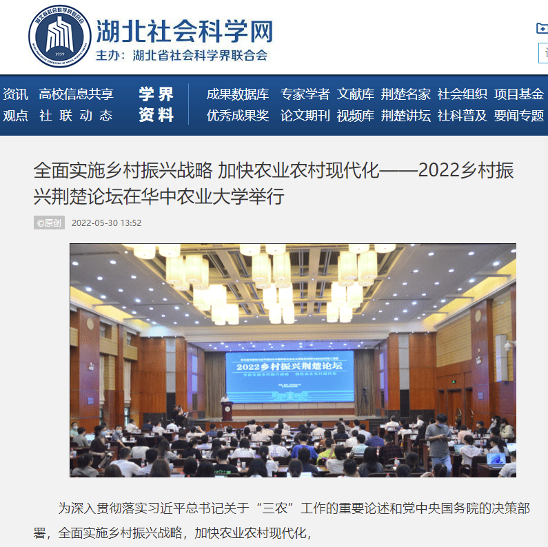 湖北社会科学网2022年5月30日报道