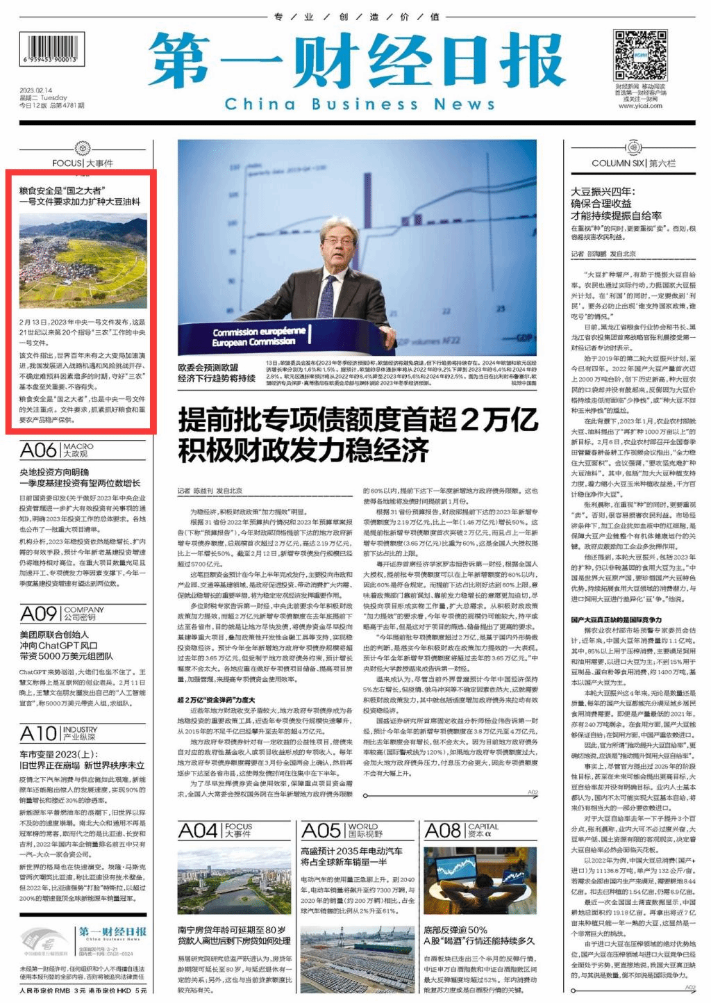 核心提示:2月13日,2023年中央一号文件发布。九三学社湖北省委经济专委会副主任、beat365中文唯一官网经济管理学院教授何可老师就此接受第一财经记者采访,相关内容刊发于《第一财经日报》2023年2月14日第A01版、第A02版。