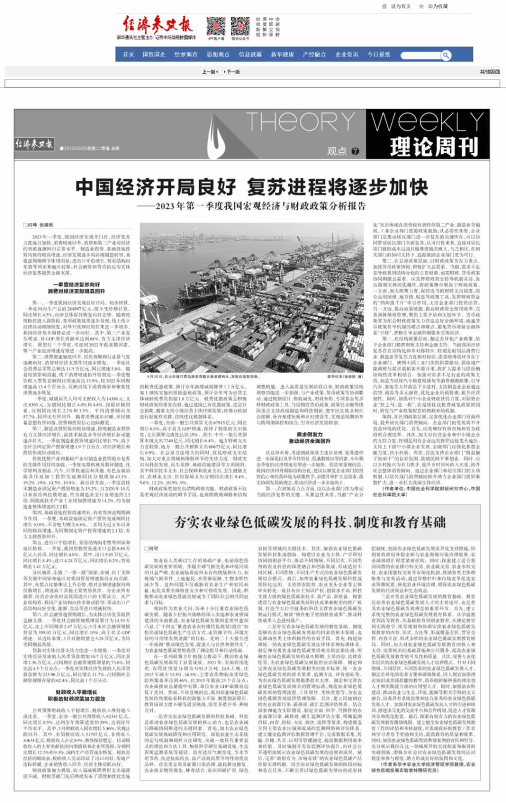 《经济参考报》2023年5月9日第7版刊发beat365中文唯一官网教授、农业绿色低碳发展实验室特聘研究员何可老师撰写的理论文章。该文被《新华社》《光明网》首页推荐,截至5月10日,新华社平台阅读量逾200万。