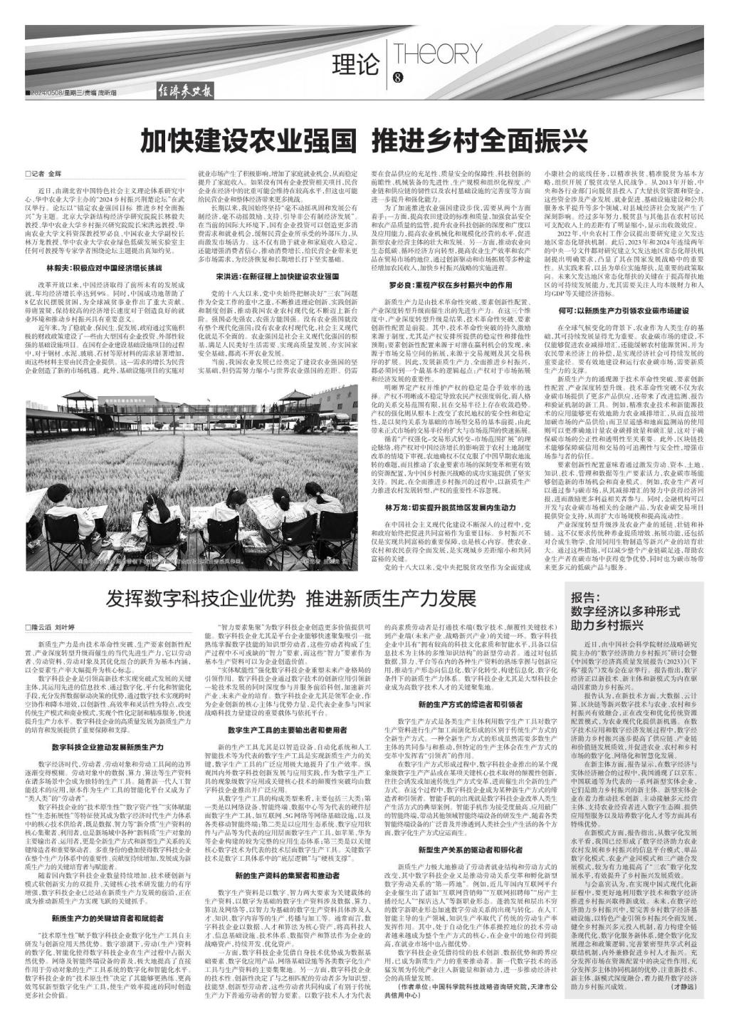 [经济参考报]加快建设农业强国 推进乡村全面振兴