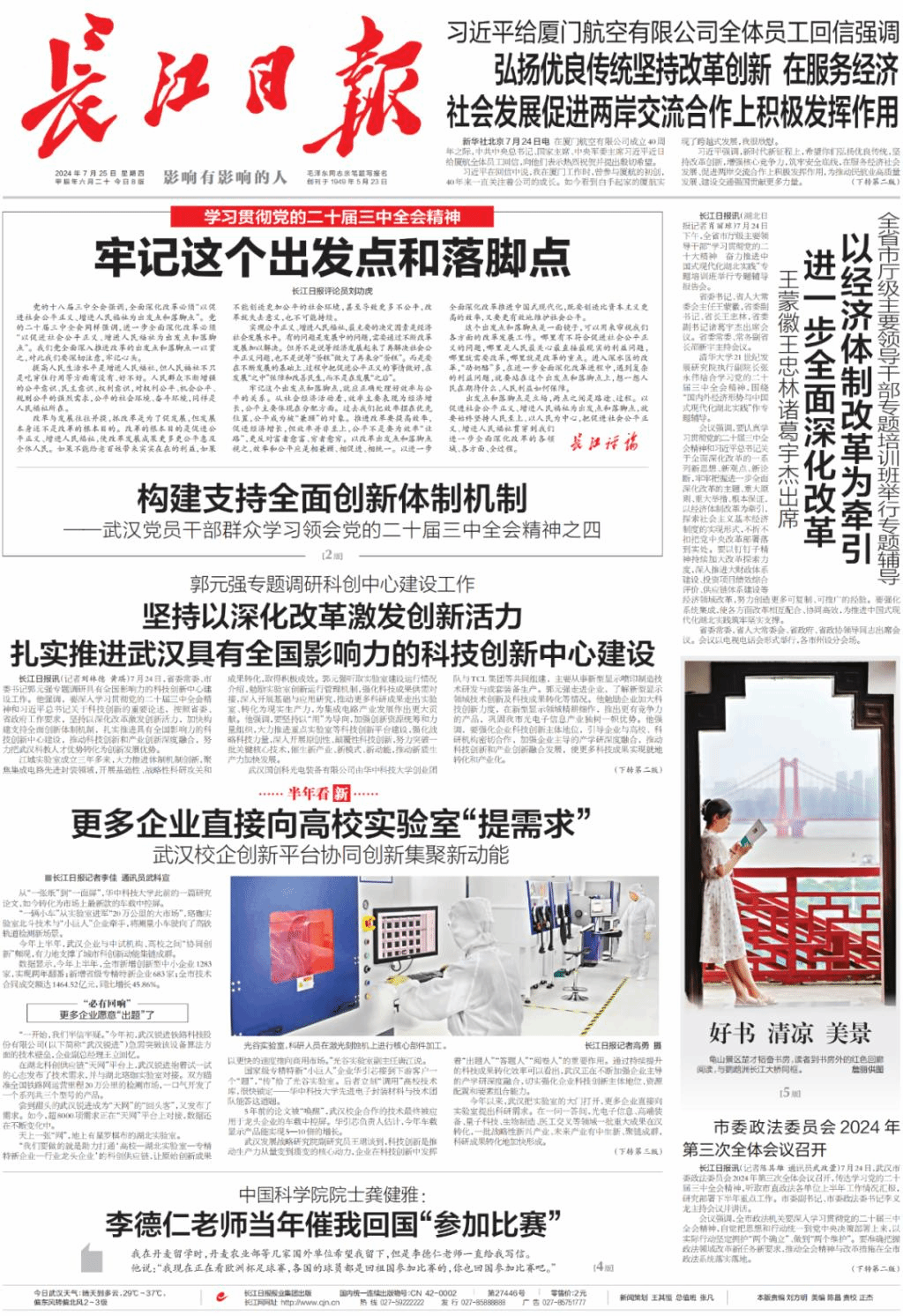“构建支持全面创新体制机制,为科技型企业发展指明了方向,增强了信心。我们也要敢于啃硬骨头,敢于涉险滩,向着最难的问题进军。”武汉中科通达高新技术股份有限公司王开学介绍,公司一直致力于推动实体经济和数字经济的深度融合,构建了全面的数据治理服务体系,涵盖数字公安、智慧交通、企业数字化转型等多个领域。
