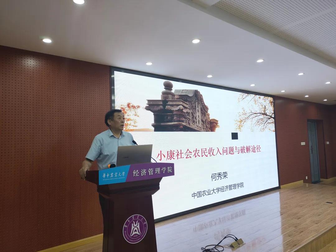 最后,何秀荣针对现有的农民收入问题提出了“扩大农场经营规模”、“提高土地生产率”、“降低生产成本”等解决途径。他还和大家分享了他在《河北学刊》上发表的“小康社会农民收入问题与增收途径”一文,帮助师生更好地学习交流。