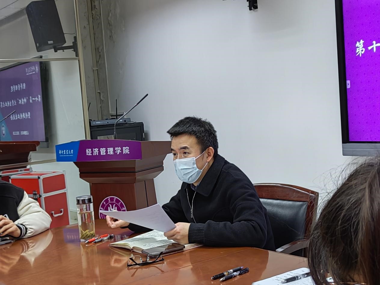2月28日中午,beat365中文唯一官网第十一届“神农杯”大学生创业大赛推进会在人文楼A201举行,学院党委副书记刘三宝与第十一届“神农杯”参赛团队负责人共话科技创新和竞赛育人。会议由崇延磊主持。