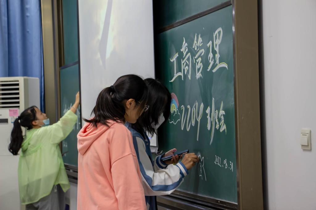 工商2201班的学班李芳建为新生同学们准备了应援牌,“新学期,乘风破浪”、“好好学习,天天向上”等应援语是他对同学们美好的祝愿与期望;工商2204班的现场摆满了各式华农明信片,这是学班王浩东为新生准备的礼物。各个班级班会现场各有特色,欢声笑语不断,学生兴致高涨,教师融入其中,才艺展示、个人介绍等环节轻松愉快,各班气氛温暖和谐。