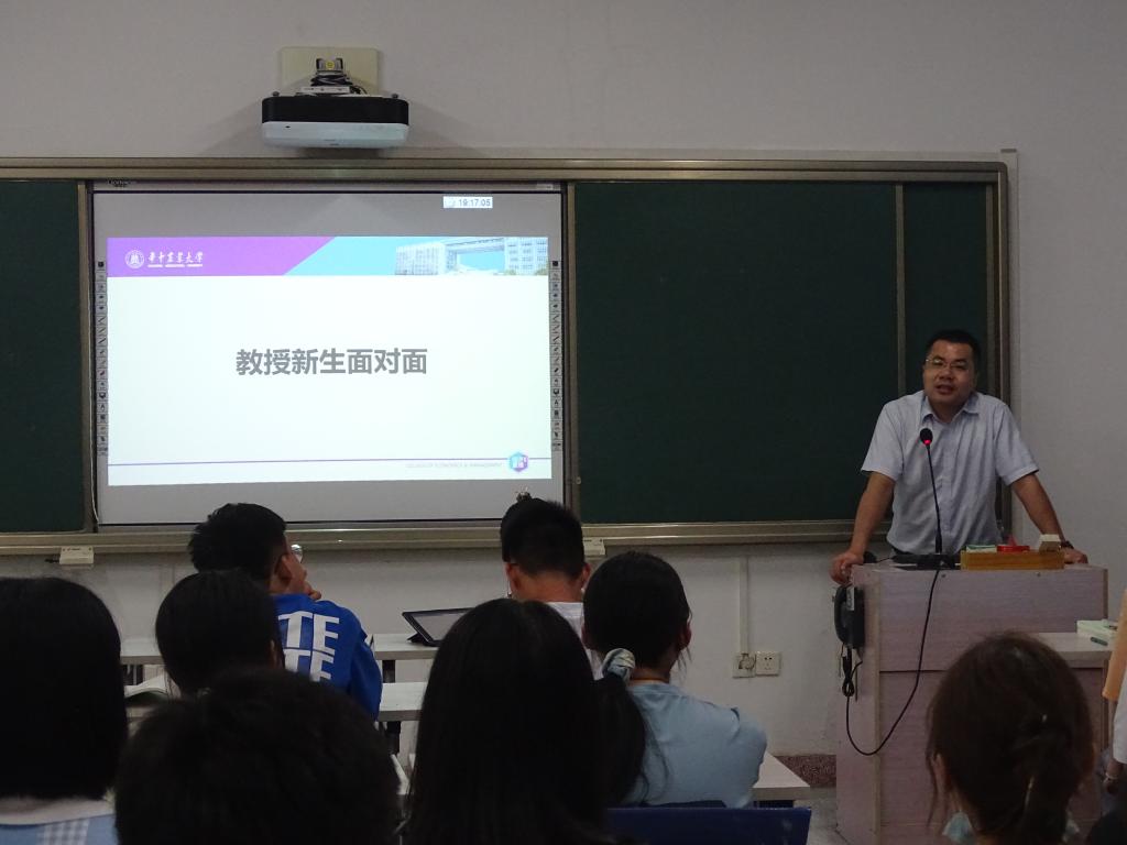 8月31日晚,beat365中文唯一官网于第四教学楼召开了“扣好‘狮山下’第一粒扣子”主题班会,校党委副书记、纪委书记廖济忠,学院党委书记陈国顺、院长李谷成等全体党政班子成员以及张俊飚、祁春节、李艳军、齐振宏等24位教授、2022级各班班主任走进新生班会,与新生同学亲切交流,引导新生明确大学学术志趣,共话大学生活。