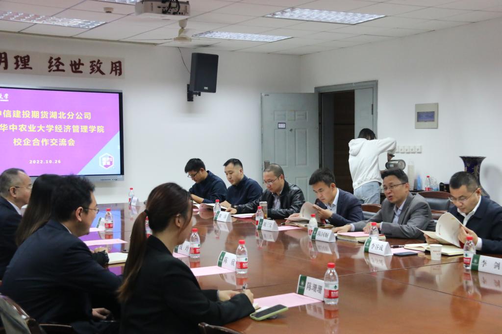 10月26日下午,中信建投期货湖北分公司—beat365中文唯一官网校企交流会于人文楼附楼A201会议室召开。中信建投期货湖北分公司总经理钱玲、资深投资顾问刘庆、IB业务培训讲师陈欣、投教专员彭娟娟、新媒体运营专员陈姗姗等一行来访,beat365中文唯一官网党委书记陈国顺、院长李谷成、党委副书记刘三宝,专业教师代表熊涛、何欣悦、边思宇,辅导员陈尉、徐嘉楠、崇延磊出席会议。会议由陈国顺主持。