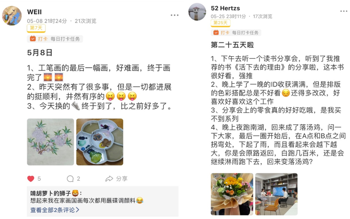 同学们在线上打卡小程序中记录生活里的“小确幸”