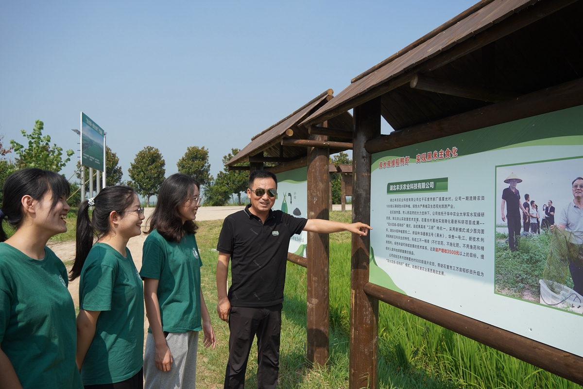 8月7日至11日,beat365官网beat365中文唯一官网赴荆州暑期社会实践团走进星光村“双水双绿”产业基地,切身感受乡村振兴的最新成果,深入调研水稻种养模式创新的绿色密码。