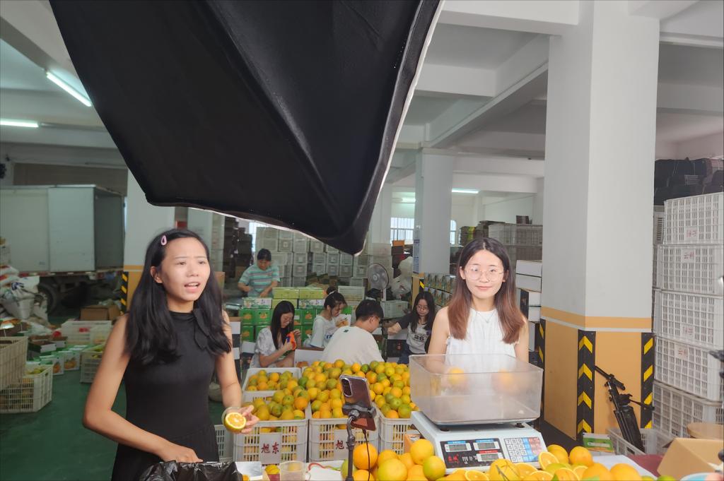 李运程协助主播介绍夏橙与西兰卡普(通讯员 张文康 摄)