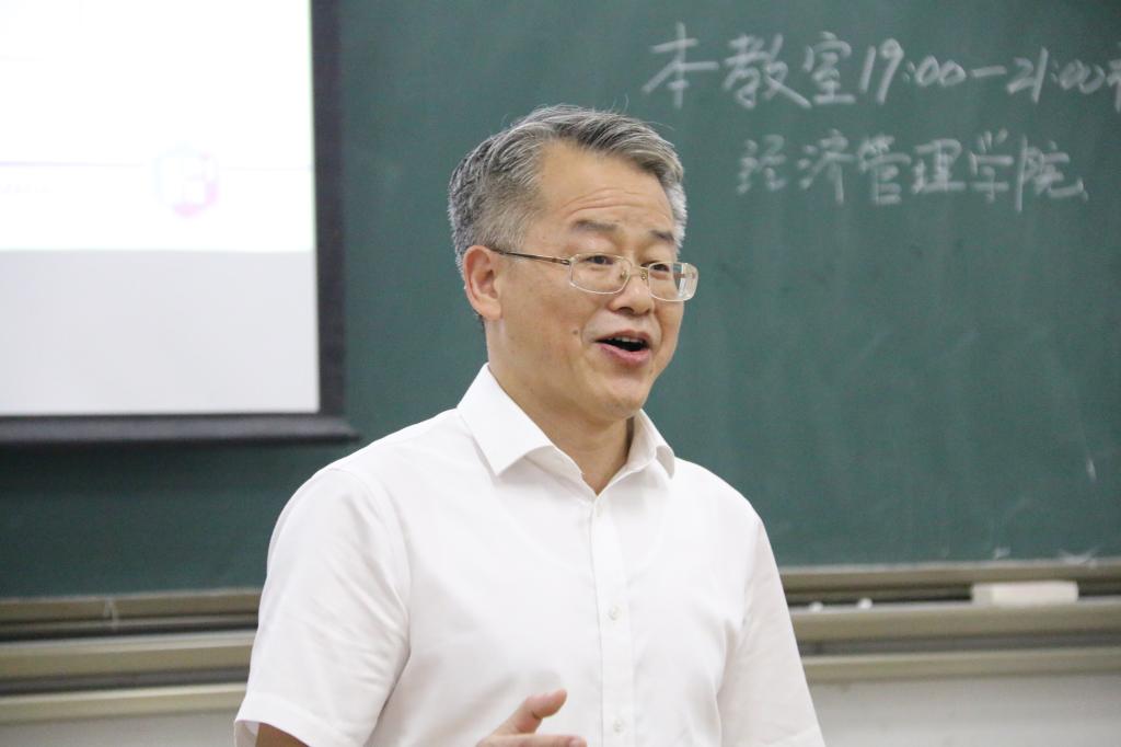 经济学系主任曾光副教授谈到,“五岁就是一代人,同学们有更好的平台、更优的环境、更多的知识、更广的阅历”,他希望站在更高的起点上的新生同学们,要以更高的标准要求自己。要懂得“求上得中”的道理,提前做好规划,明确考研、就业等目标,遇见更好的自己。