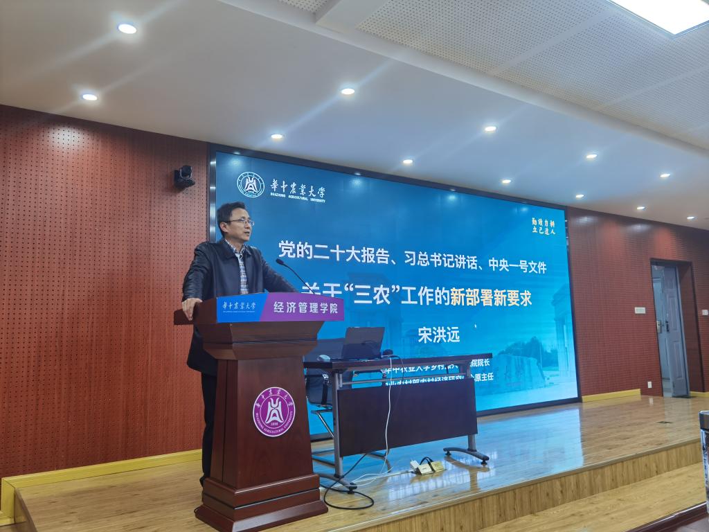 3月9日下午,beat365官网乡村振兴研究院院长宋洪远教授应邀作学习党的二十大和2023年中央一号文件精神“精读精讲”专题辅导报告。全院教职工及部分研究生听取了报告。报告会由学院党委书记陈国顺主持。