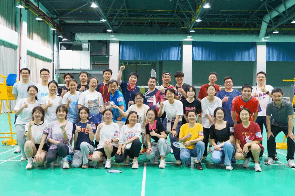 联学结束后,师生共同前往东体育馆开展羽毛球友谊赛。羽毛球友谊赛采取团体混双抢21分的赛制,24名参赛师生被提前分为自信队、自强队、守正队、创新队四支队伍,每支队伍含三男三女,通过抽签决定队内混双搭档,在各队之间展开三局两胜制的混双比拼。