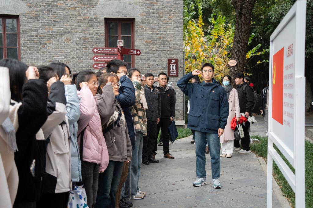 “我志愿加入中国共产党,拥护党的纲领,遵守党的章程……”在五大会址小广场前,预备党员们进行了入党宣誓,庄严肃穆的神情、铿锵有力的字句,无不透露出坚定的入党决心和信念。