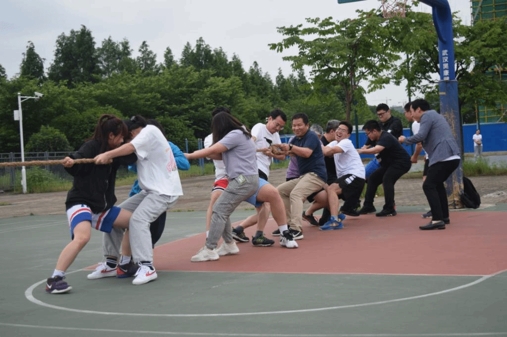 首先进行的是拔河比赛。在欢快的音乐声中,由17、18级同学、40岁以上老师组成的腊肉队对战由19、20级同学、40岁以下青年老师组成的鲜肉队,双方排兵布阵,各派出8男4女。