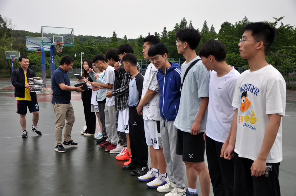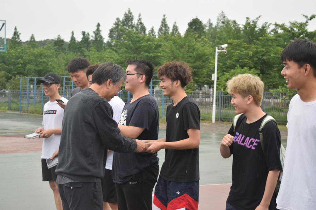 在篮球赛结束之后,由高韧老师、系主任包玉泽老师及系支部书记李春成老师为参加本次活动的教师及各年级的同学们颁发印有“beat365中文唯一官网市场营销系”的笔记本作为纪念。