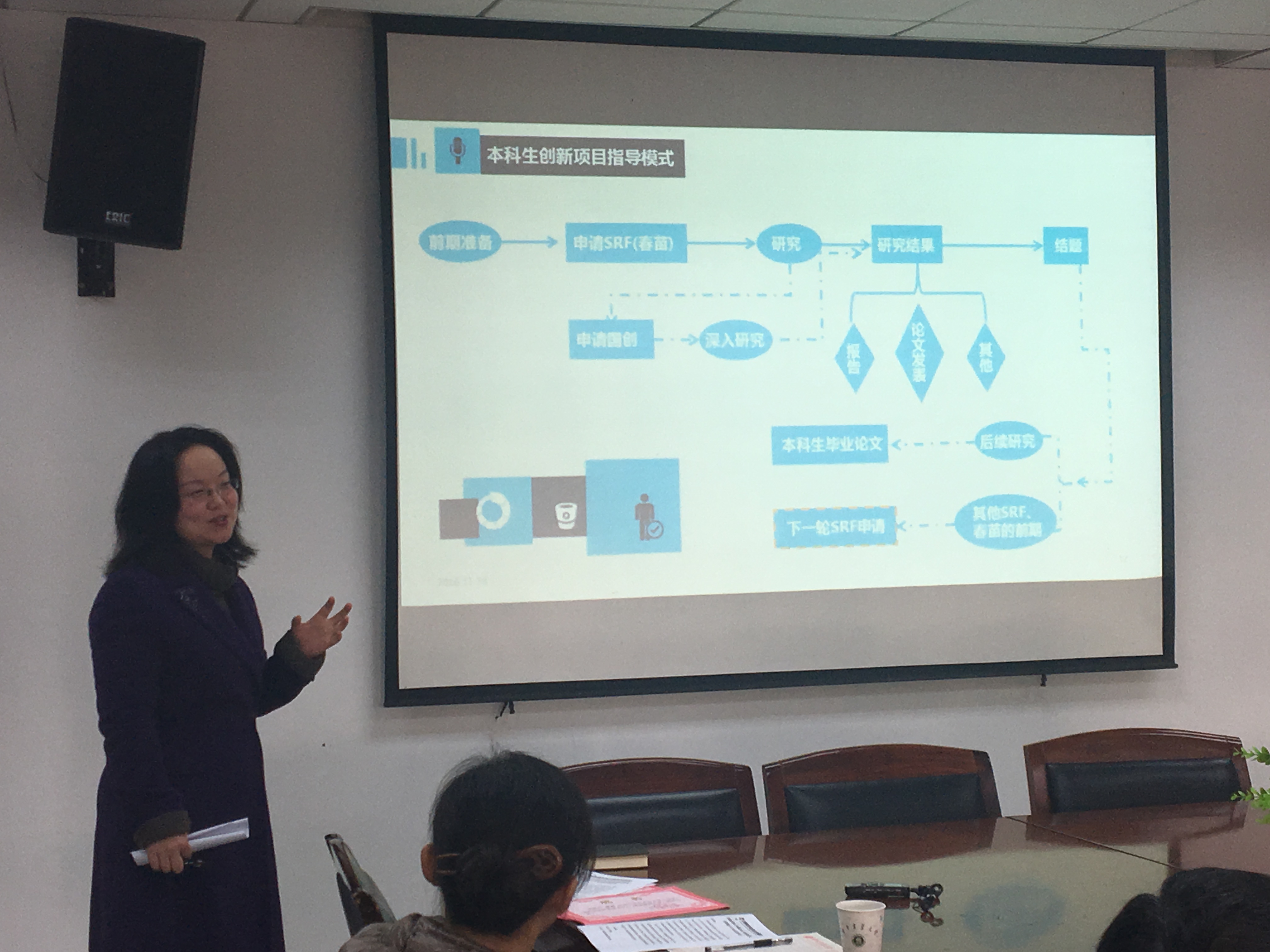 随着学校创新创业训练实践体系的日趋完善,越来越多的师生参与到大学生创新创业及科研实践的训练中。beat365中文唯一官网柳鹏程副教授分享了她在大学生科技创新项目指导的经验心得。她总结出“本科生创新项目运行模式”:前期准备-申请SRF立项-申请国创-研究-出成果-结题,这是一条完整的主线。“科研训练是一个很好的锻炼平台,既是对学生的锻炼,也是对指导老师的锻炼。”柳鹏程提出了“学生get技能的金字塔模式”:项目开展过程中,学生首要是掌握写作、交流、团队协作等基本技能,再学会文献查找、数据库使用、文献引用格式、Excel和stata等学术技能、软件运用。在此基础上,开始培养学生的学术思维和逻辑,最后升华到创新能力的提升。”