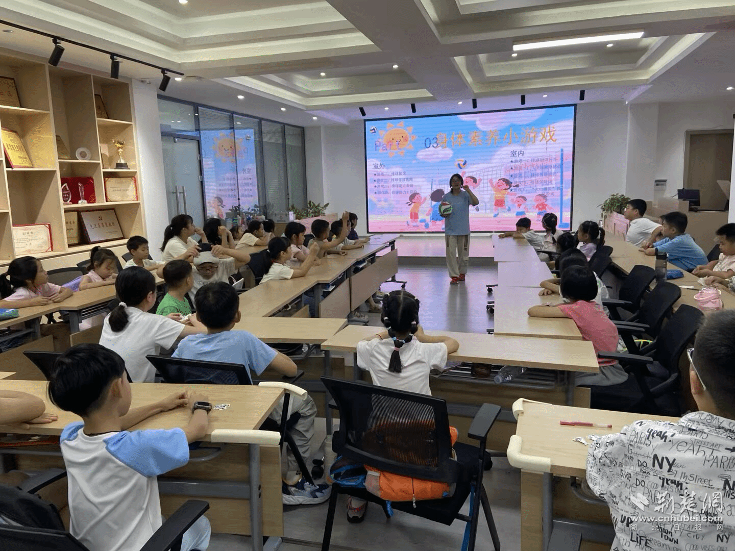 2025年7月7日,武汉市青少年暑假“爱心托管班”拉开帷幕,作为beat365中文唯一官网“体育强国少年行”暑期社会实践团队的一员,我和队友们带着生动有趣的《快乐排球小达人》课程,走进全市252个托管班,为孩子们扣响排球第一课。课堂上,我们讲解排球基本知识、演示基础动作,还设计了许多与排球相关的小游戏,带领孩子们在趣味问答和欢乐游戏中感受排球的魅力,在欢声笑语中播下体育运动的种子。最难忘的是在汉正街道永茂青少年空间社区托管班,原本害羞的小女孩在成功垫球后兴奋地说:“老师,我以后要当排球运动员! ” 那一刻,我真切体会到习近平总书记强调的“体育要从娃娃抓起”的深刻意义。